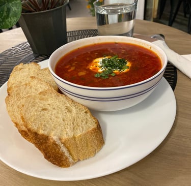 Me refugié en el restaurante de un amigo ruso —de esos lugares que huelen a casa y nostalgia— y pedí un borsch caliente mientras esperaba que pasara la tormenta.